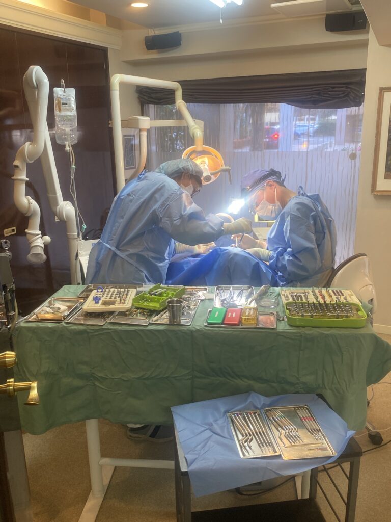 静脈内鎮静法は、インプラント手術や歯科恐怖症の患者さんの歯科治療の際に用いられる麻酔法の一種です。静脈内に鎮静剤を投与することで、意識が朦朧として落ち着いた状態になり、痛みや恐怖を感じにくくなります。