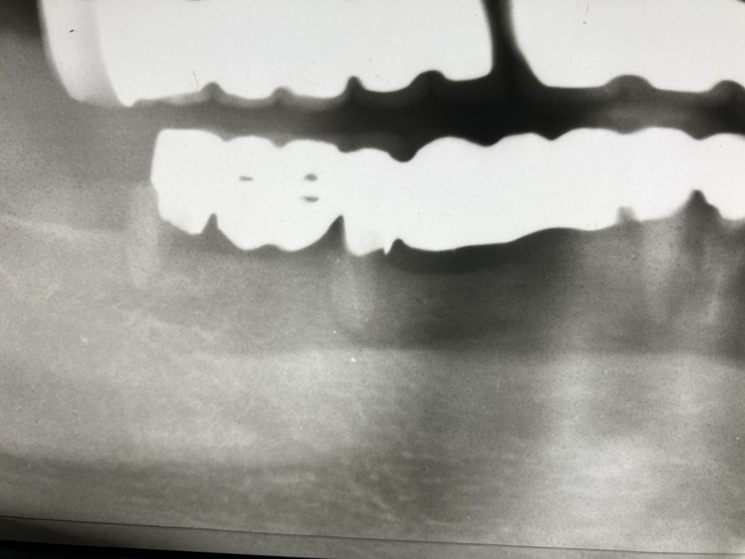 比較的安定するブリッジは写真のような一歯欠損のブリッジですが、ロングスパンの場合は長期予後が悪いのが通例です。