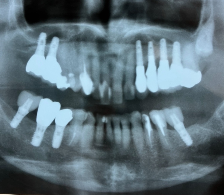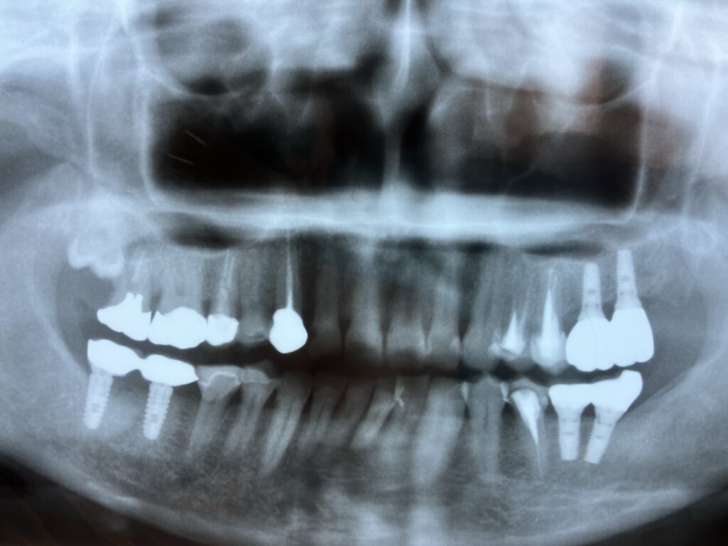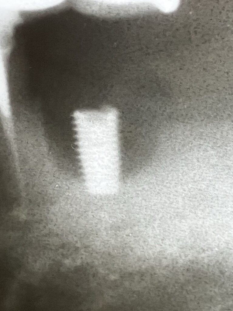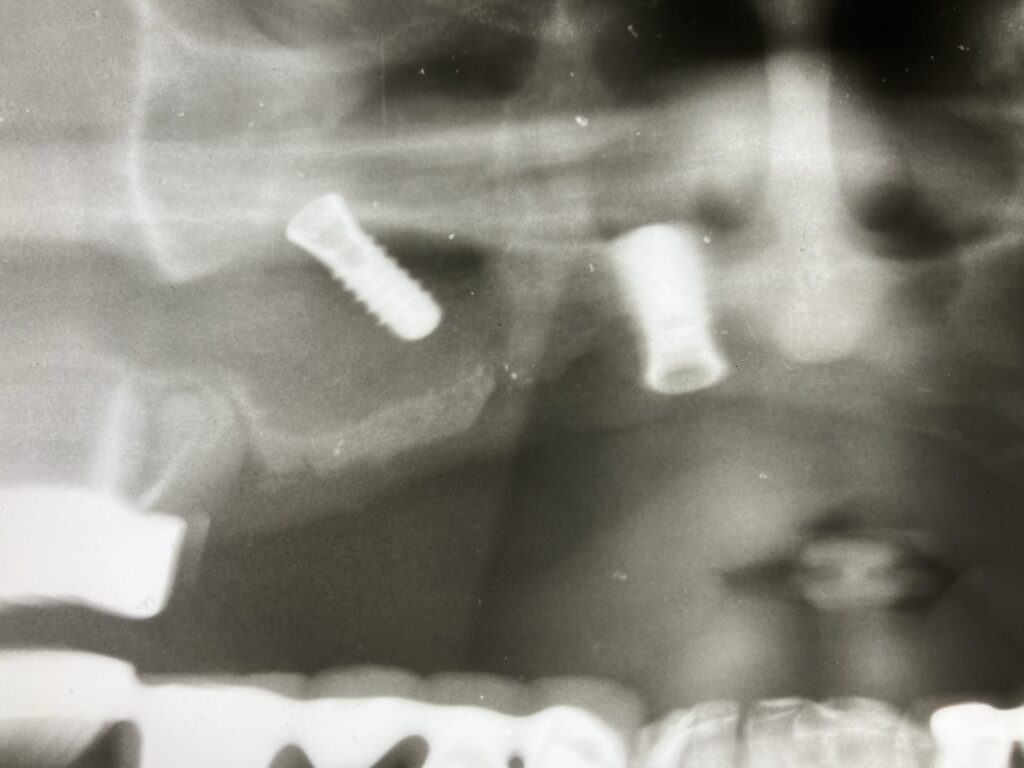 他院からの患者さんです。 インプラントフィクスチャーが上顎洞内に迷入したケースです。 偶発症のひとつです。 インプラントの上顎洞迷入(じょうがくどうめいにゅう)とは、主に上顎の奥歯にインプラントを埋入する際、インプラント体やその一部が誤って... -